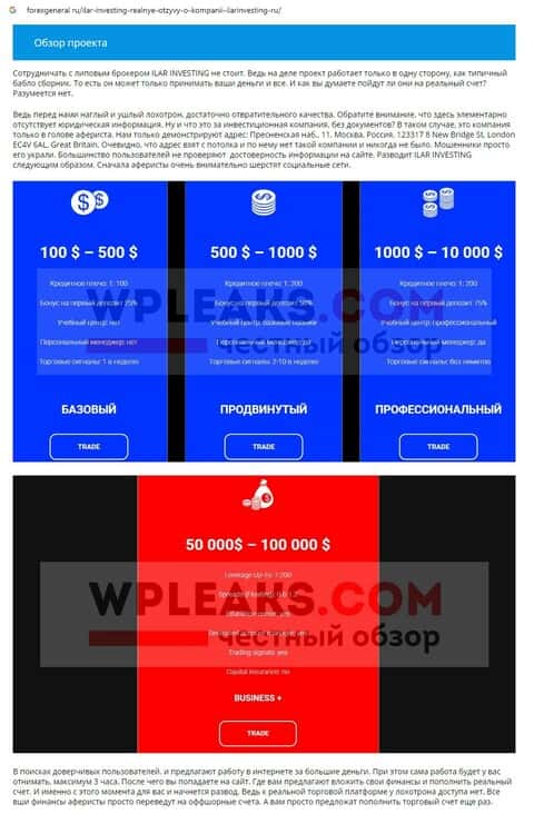 Далее предоставлен еще один обзор о псевдо-брокерской конторе Илар Инвестинг, которая вводит людей в заблуждение рассказывая о прибыли, которой здесь нет.