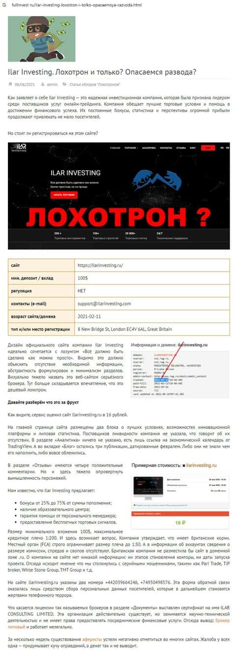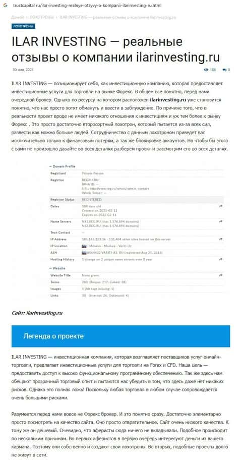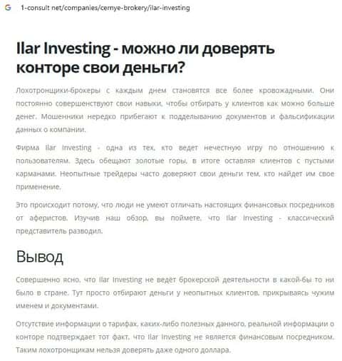 Ilar Investing - обзоры лохотронщиков на других интернет-ресурсах