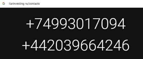 Мошенники Ilar Investing на своем дырявом сайте указали несколько номеров контактного телефона, с которых навязчиво названивают потенциальным жертвам: