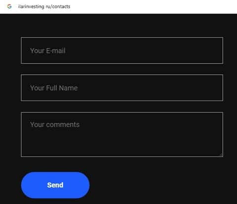 Мошенники Илар Инвестинг ведут сбор данных о посетителях своего дырявого сайта, просят указать свой адрес электронной почты в качестве обратной связи.
