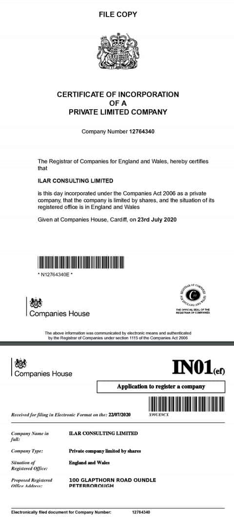 Вместо лицензии компании мошенники аферисты Илар Инвестинг на своем веб-сайте предоставили сертификат о регистрации, который вероятнее всего им не принадлежит.