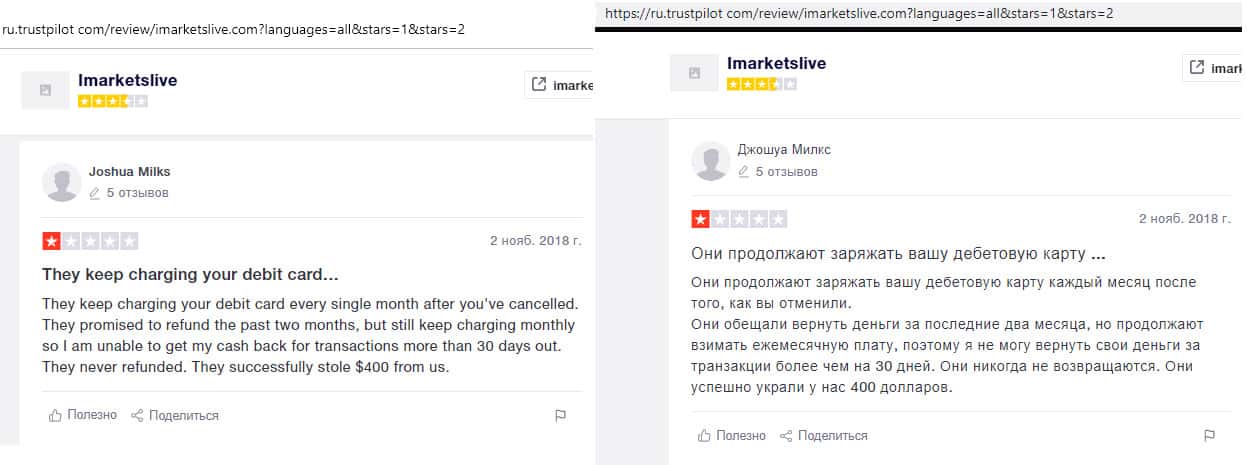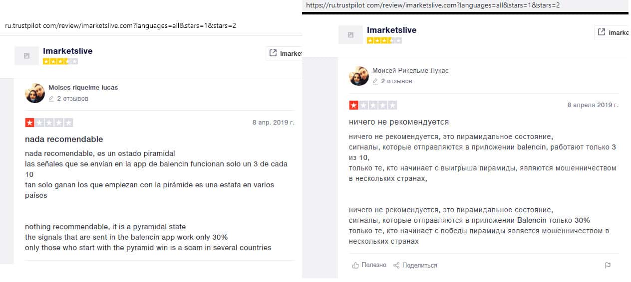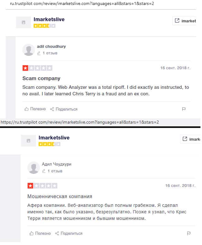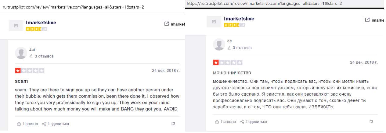 - Отзыв о мошенничестве со стороны аферистов iMarketsLive