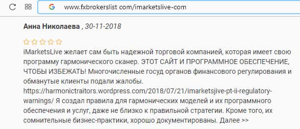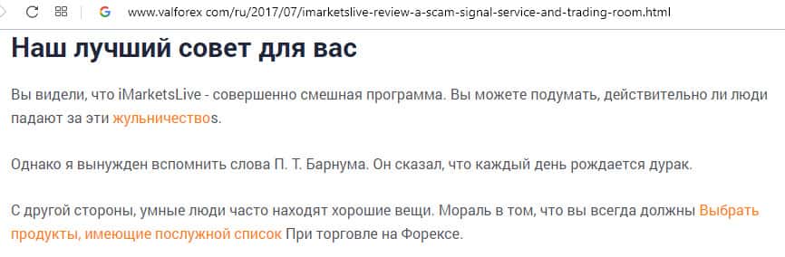 Правдивой мнение о форекс-аферистах Ай Маркетс Лив