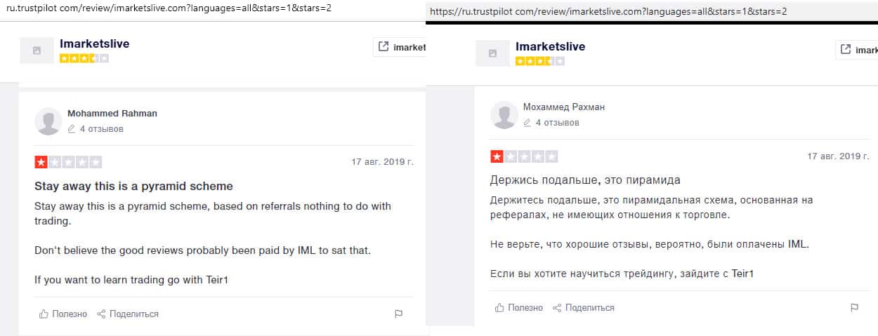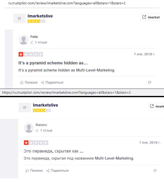 - Негативное мнение о финансовой пирамиде Ай Маркетс Лив