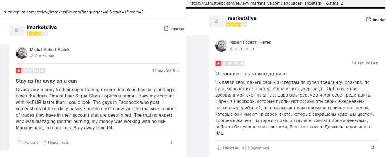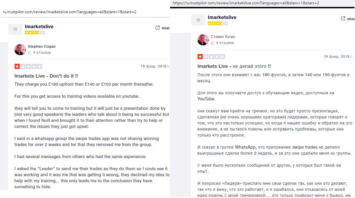 Если бы не отзывы от людей, которые написали по различным сайтам всю правду о том чем занимаются в лохотроне iMarketsLive, то автор этого отзыва также попался к ним на удочку. Он просто в шоке с этого, что данная организация занимается откровенным разводом, а также махинирует с деньгами своих клиентов.