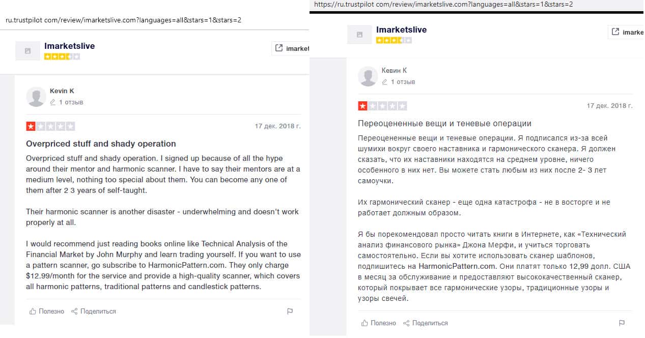 Очередной пользователь сети рассказывает, что мошенники Ай Маркетс Лив специально пишут положительные отзывы о своей компании, а соответственно люди будут попадаться на обман. Это заметно из того, что в течении месяца никто не писал на одном из сайтов ни одного отзыва, а потом за несколько часов сразу появилось несколько.