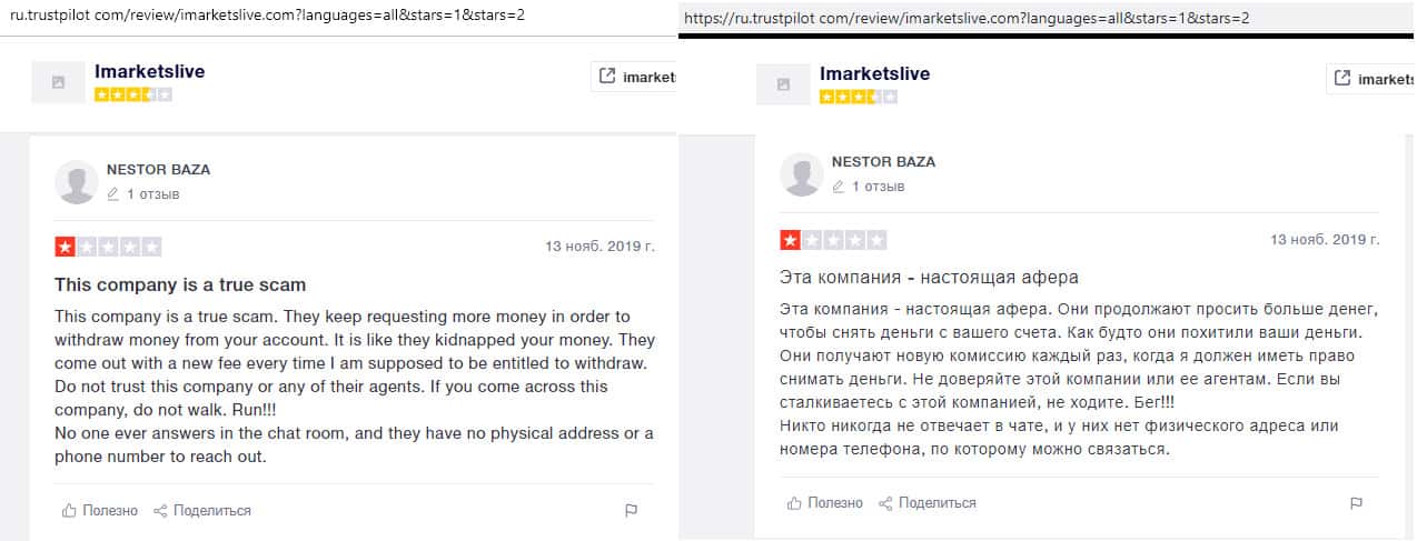 - Отзыв о ненадежной мошеннической конторе iMarketsLive