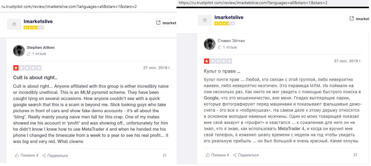 - Правдивой мнение о форекс-аферистах Ай Маркетс Лив