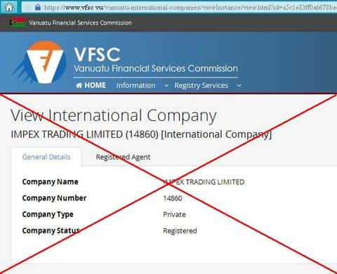 Лицензию мошенникам ИМПЕКС выдала комиссия по финансовым услугам Вануату. На официальном сайте комиссии vfsc vu действительно есть информация о регистрации конторы Impex Trading Limited, правда единственным условием для выдачи документа является депонирование залога на сумму всего 50000 долларов США.