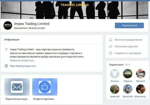 У мошенников IMPEX есть активная страничка рекламного характера в ВК, созданная 5 августа 2019 года. Раскруткой занимается некая Krista Антипова, она же связана с еще одной конторой, занимающейся венчурными инвестициями. Кроме саморекламы, мошенники ИМПЕКС заполнили страницу статьями по саморазвитию и уже набрали 9917 подписчиков.