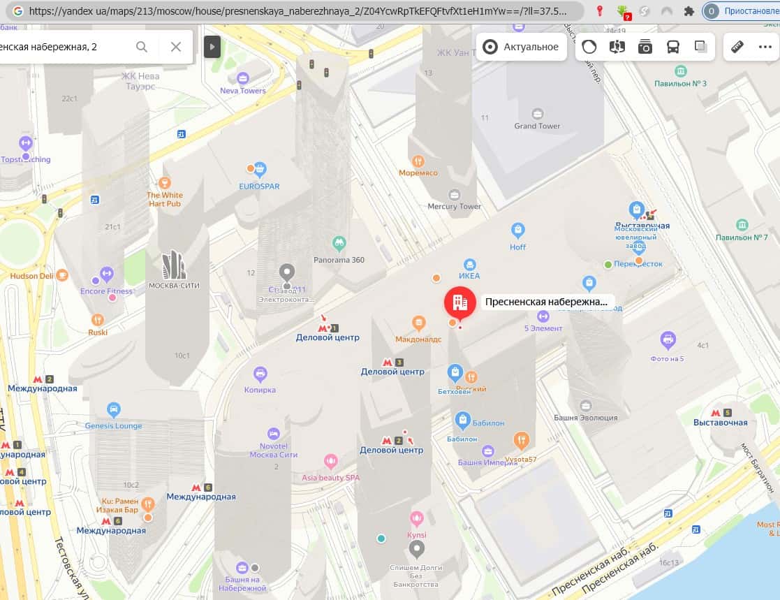 Российская Федерация, г. Москва, Пресненская набережная, 2\239