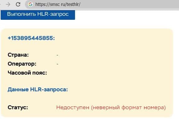 smsc ru testhlr - сервис проверки телефонных номеров посредством HLR-запроса