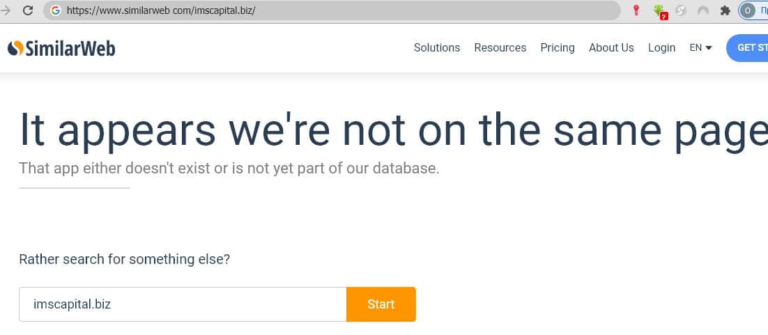 При попытке проанализировать работу портала консалтингового агенства ИМС Капитал нас ожидало фиаско, порталу similarweb не знаком сайт этих мошенников вообще.