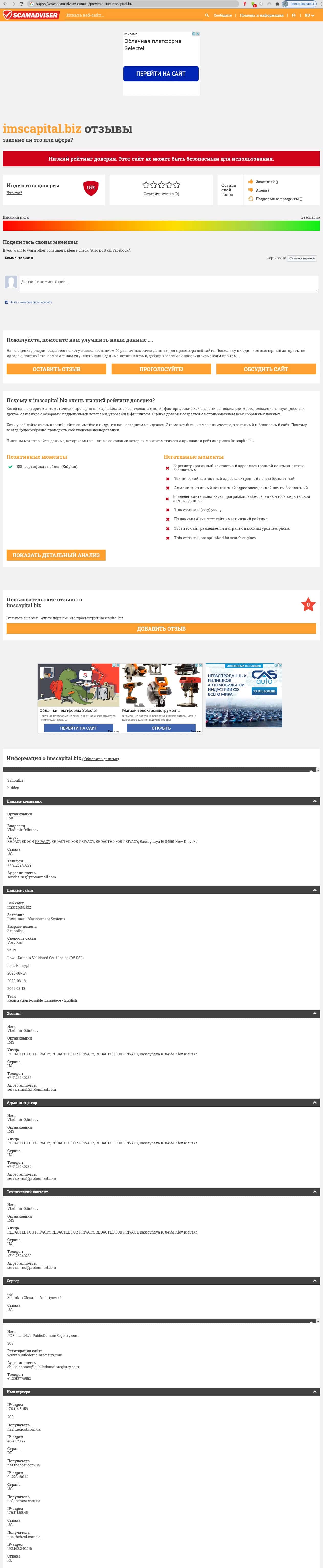 Портал scamadviser предлагает относится к сайту ИМС Капитал с опаской, тому есть причины: сокрытие хозяином сайта данных, хитросплетение русско-украинских корней конторы...