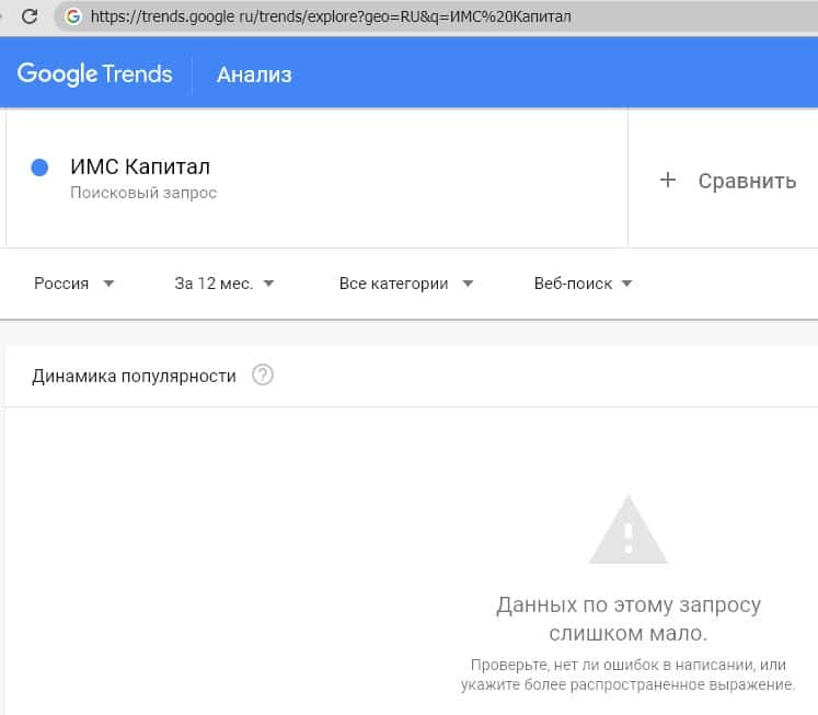 Анализ брендовых запросов о ИМС Капитал на поисковых серверах Google