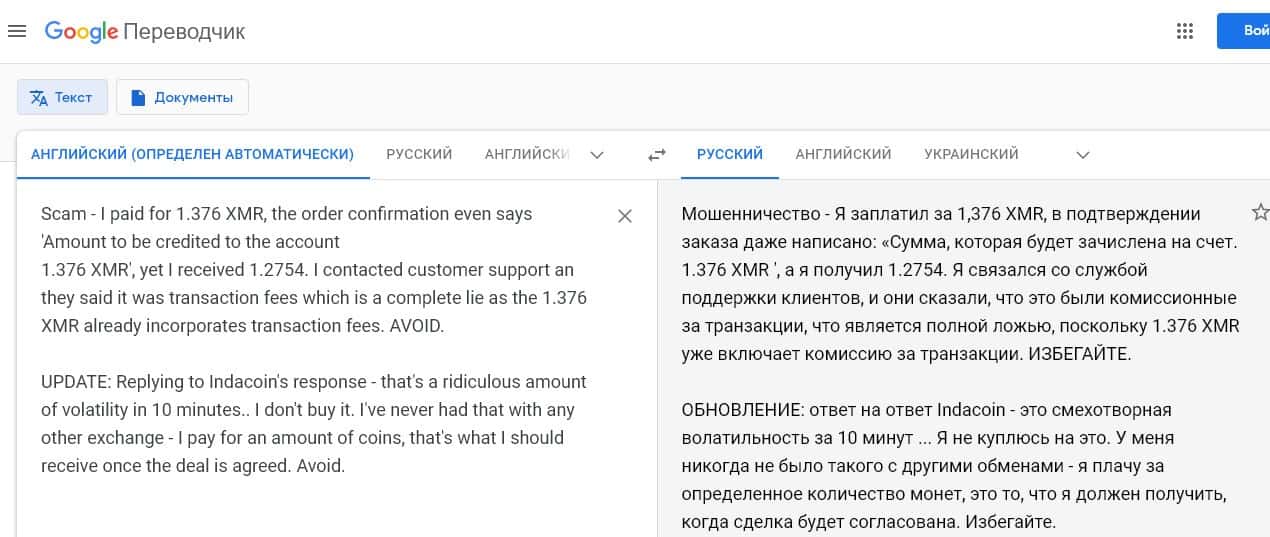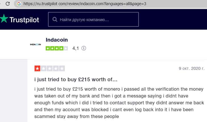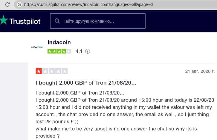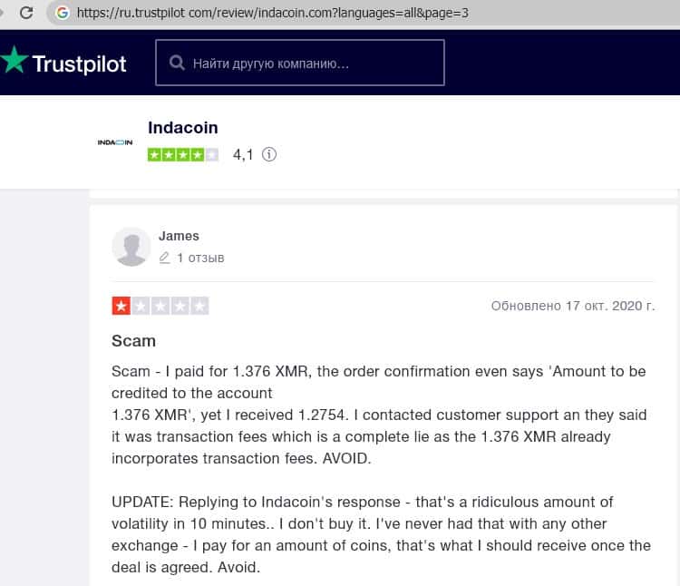 Вот на портале trustpilot клиент этого обменника предупреждает, что криптообменник Инда Коин жульничает с обменными курсами вовремя проведения транзакций.