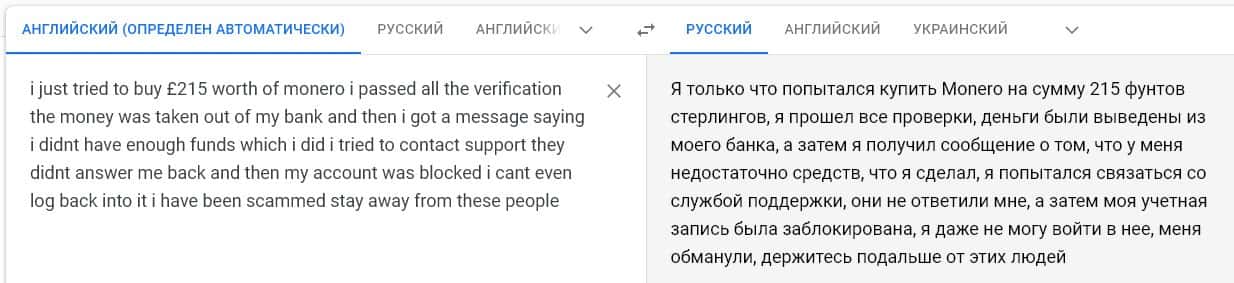 А клиент, оставивший отзыв на портале bestchange ru, отмечает, что вместе с комиссией и так называемым "колебанием курса" потерял на транзакции 40% ожидаемой суммы.