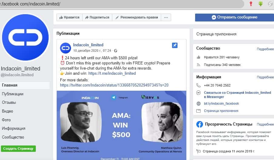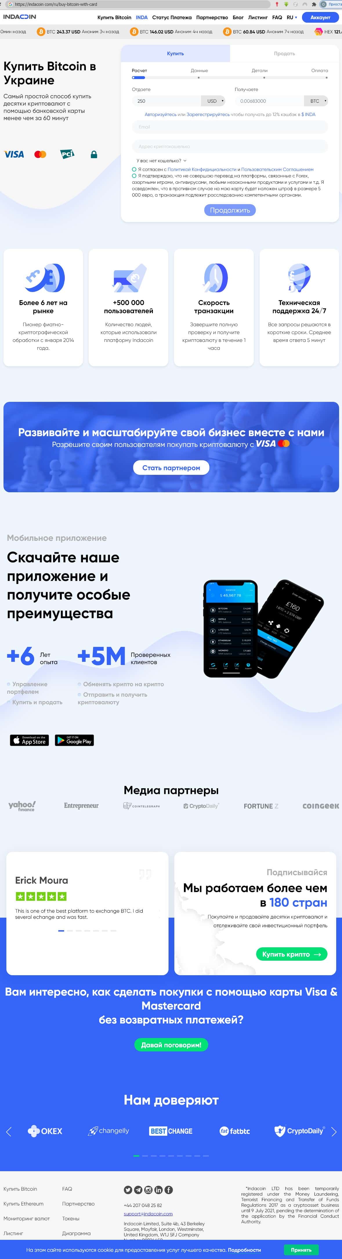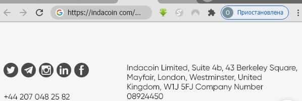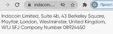 Сайт мошенников, организовавших криптообменный бизнес, уведомляет нас о принадлежности своих активов одноименной компании Indacoin Limited из Лондона.