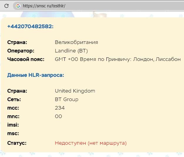 smsc ru testhlr - сервис проверки телефонных номеров посредством HLR-запроса