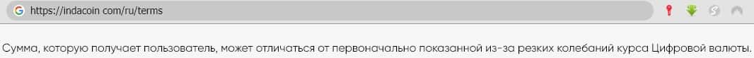 Аферисты криптообменника Инда Коин прямо предупреждают клиентов, что курс обмена будет меняться во время проведения операции обмена.