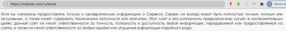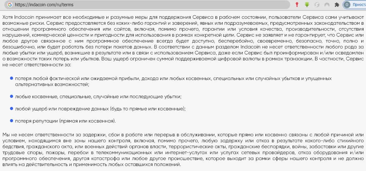 Администрация криптообменника Инда Коин снимает с себя любую ответственность перед клиентами за нанесенный им ущерб.