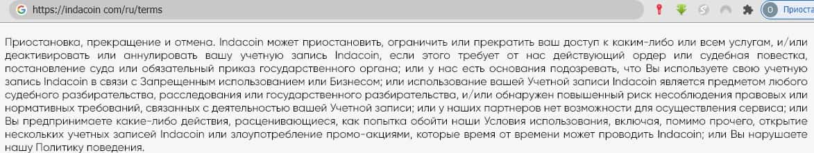 Клиентское соглашение, предлагаемое аферистами из Инда Коин своим наивным клиентам