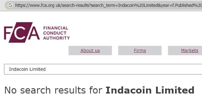Компания Indacoin Limited, местом регистрации которой является Лондон, по английским законам должна пройти лицензирование своей деятельности в FCA, которого у неё нет.