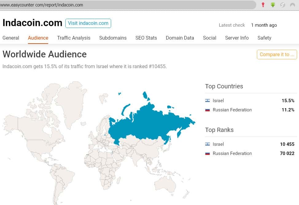 Сервис анализа сайтов similarweb ни по одной категории не выдаёт каких-нибудь внятных результатов. Причиной тому низкая популярность этого криптовалютного лохотрона Инда Коин.