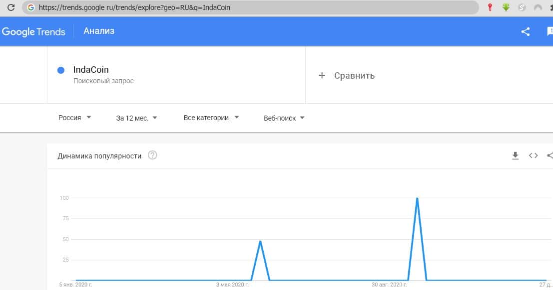 - Анализ количества поисковых запросов по бренду Инда Коин в google trends