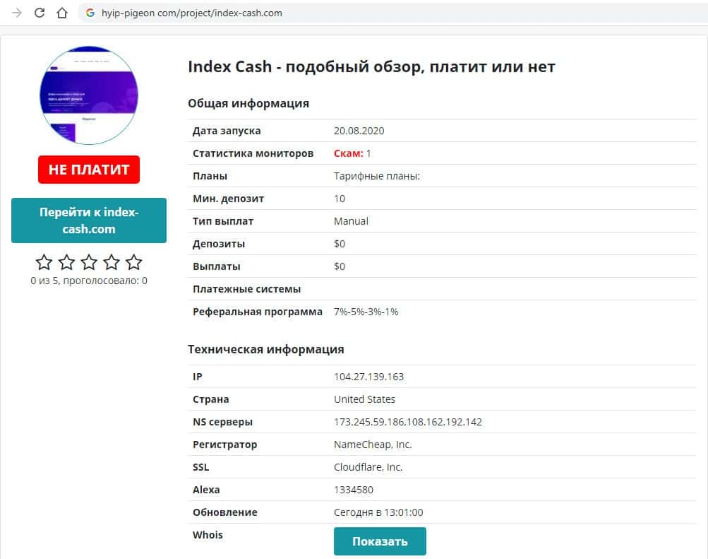 Сразу видно, что Индекс Кэш - это классическая схема развода и пирамида, которых сейчас развелось на просторах сети очень много. С ними нельзя иметь дел.