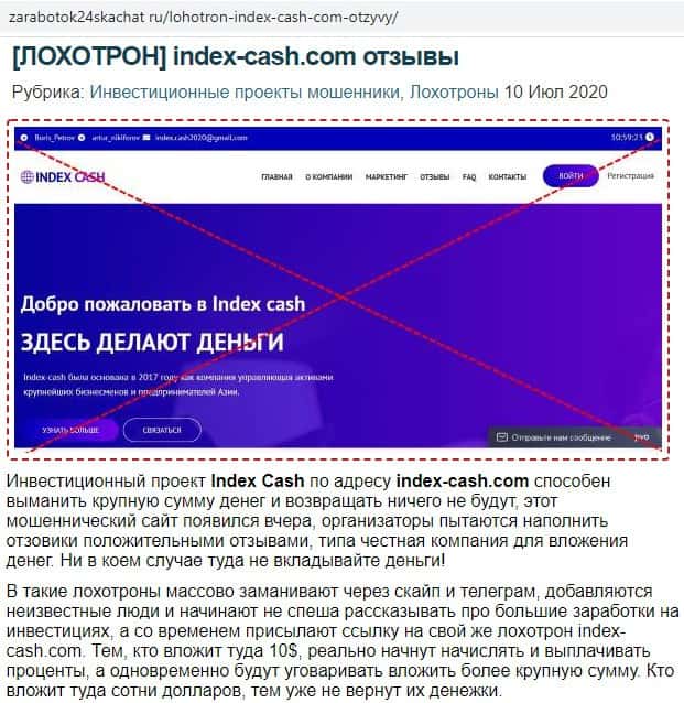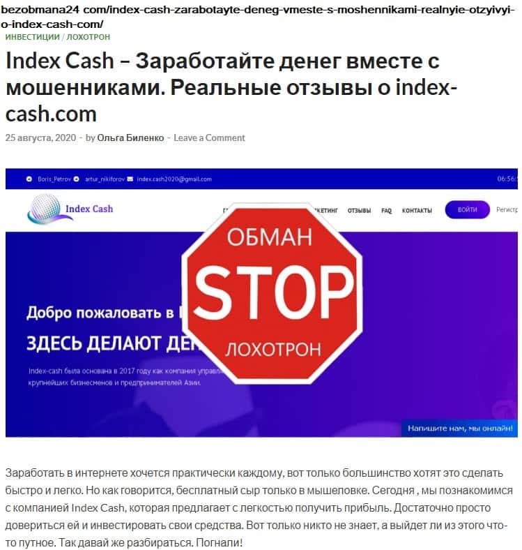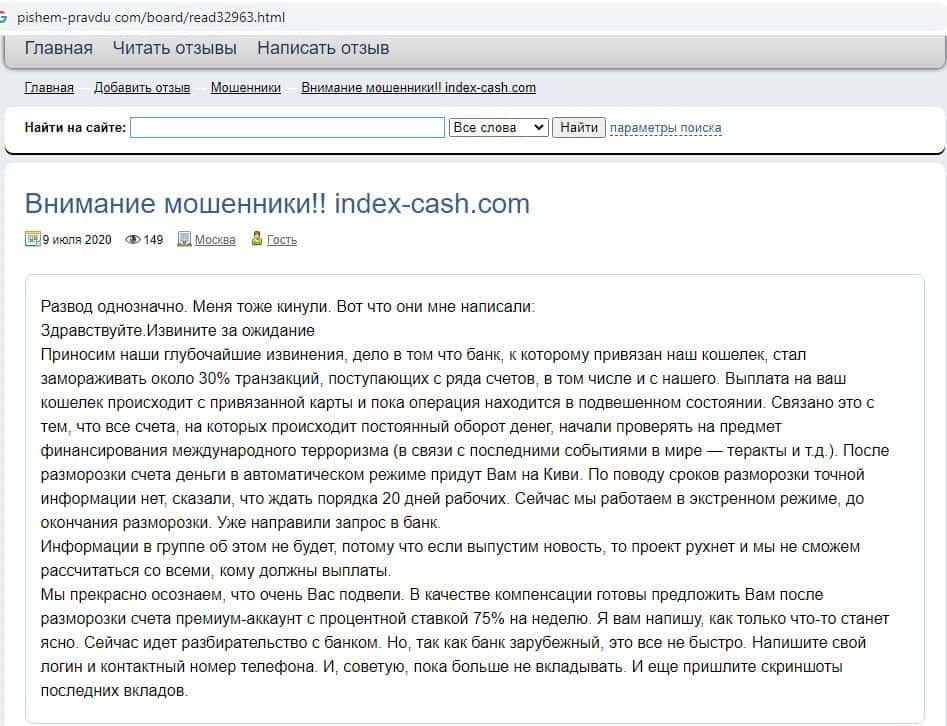 - Отзывы о мошенниках Индекс Кэш в интернете