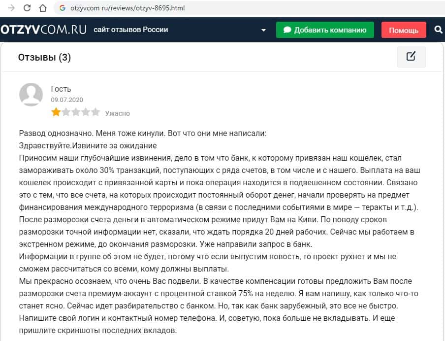 otzovichka ru - сайт с отзывами о работе лохотрона
