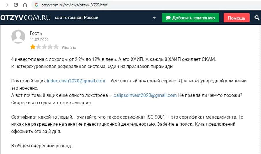 Также Индекс Кэш - это обычная псевдо-инвестиционная компания, с которой нельзя иметь вообще никаких дел, если вы не хотите потерять свои деньги.