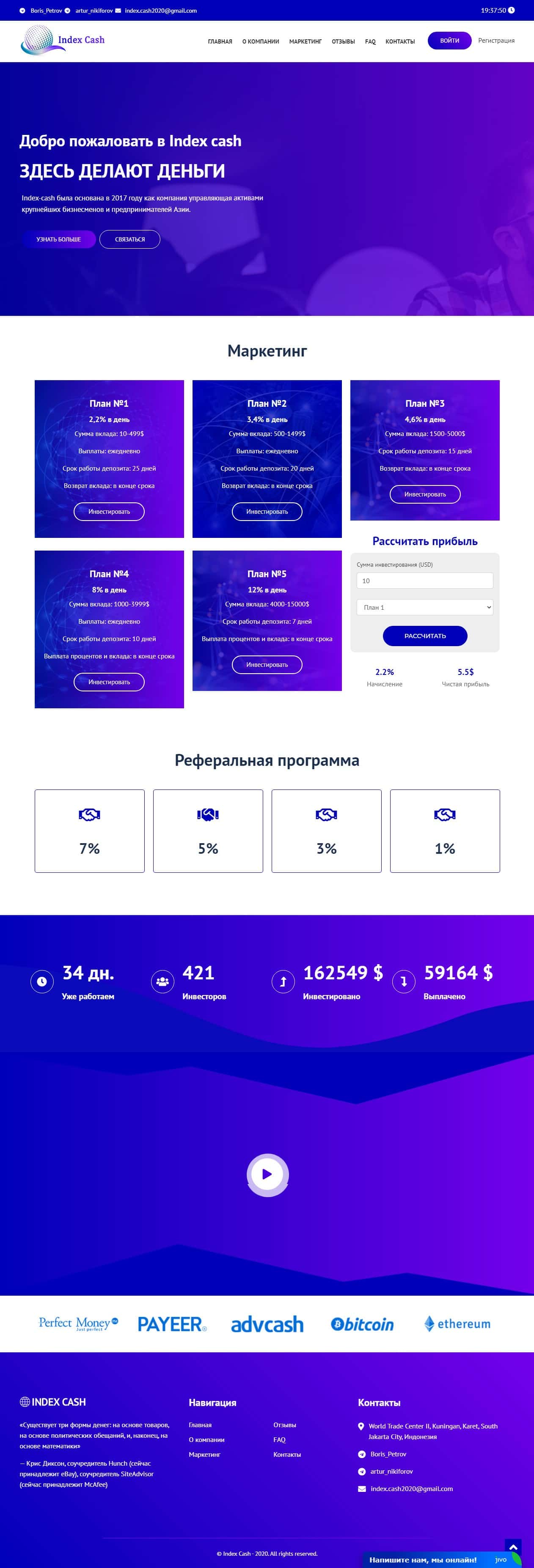 - Что можно сказать о главной странице сайта жуликов Index Cash?