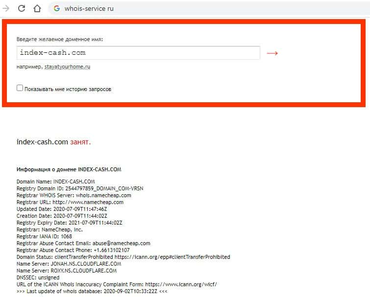 Жулики index-cash com рассказывают о том, что они работают с 2017 года, но по факту их домен существует всего 55 дней.