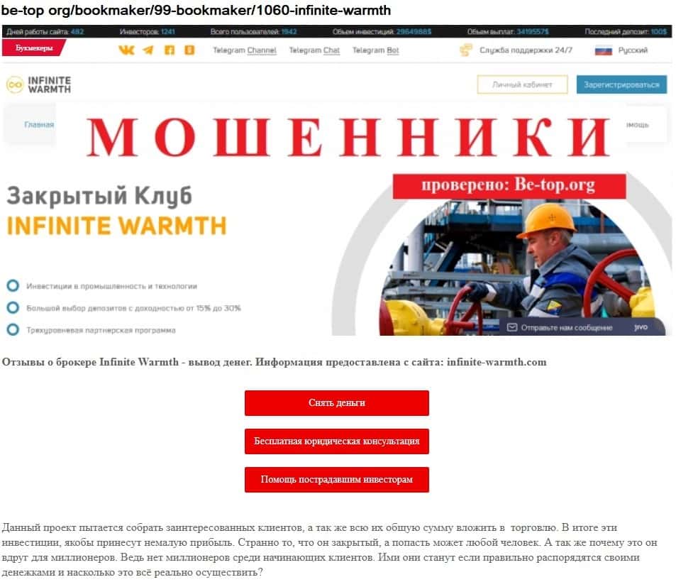 - Infinite-warmth com - официальный домен аферистов Infinite Warmth
