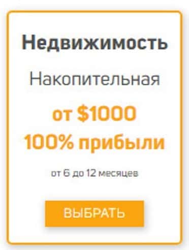 Пятый тип счета для инвестиций от мошенников Infinite Warmth - это "Недвижимость" с накопительной системой и минимальной инвестицией от 1000$.