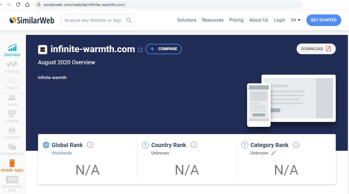 - Источники трафика по сайту infinite-warmth com неизвестны