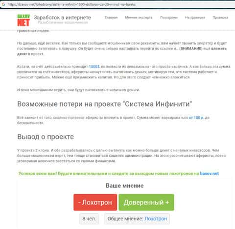 Статья о лохотрон Инфинити Апп с портала baxov net