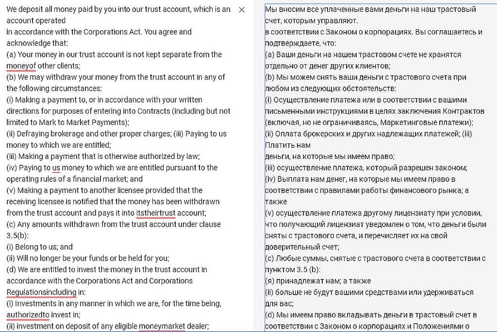 На сайте жуликов INGOT Brokers присутствует клиентское соглашение на английском - с кучей ошибок и элементарных опечаток, его даже не потрудились перепроверить. Смысл соглашения в том, что трейдеры согласны, что с их деньгами "трастовый фонд" будет делать что хочет и когда хочет, а потом при удобном случае украдет.