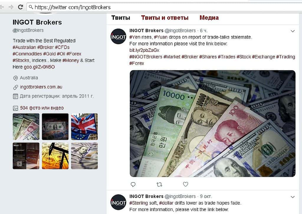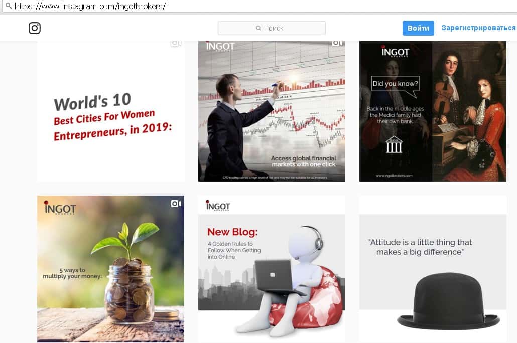 У кидал INGOT Brokers есть странички на Фейсбук, в Твиттер и Инстаграм. Все они активны, регулярно, выходят новые посты, у страниц много подписчиков. Правда, это ничего не говорит о конторе ИНГОТ Брокерс как о брокерах - информация на страницах ничего не значащая, исключительно общего направления.