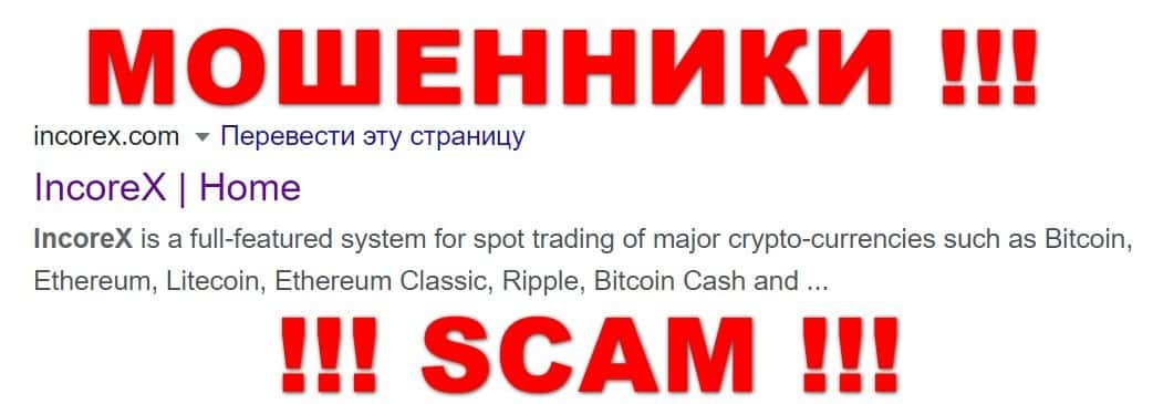 - Данные о мошеннической недобирже Incorex