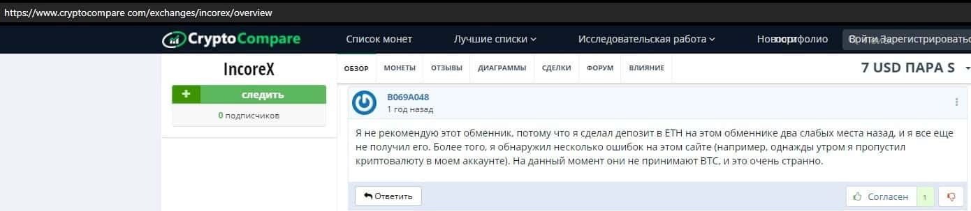 Далее представлена информация от клиента конторы Инкорекс, который указывает, что там не выводят деньги. Нужно принимать информацию во внимание, а то останетесь ни с чем.