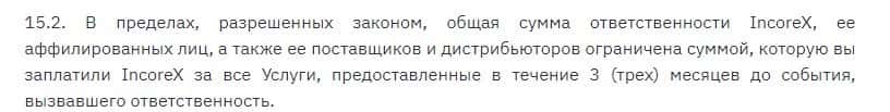 Криптовалютный лохотрон Инкорекс сразу же сказал, что они не будут нести ответственность за финансовые потери клиентов, к которым они также причастны.