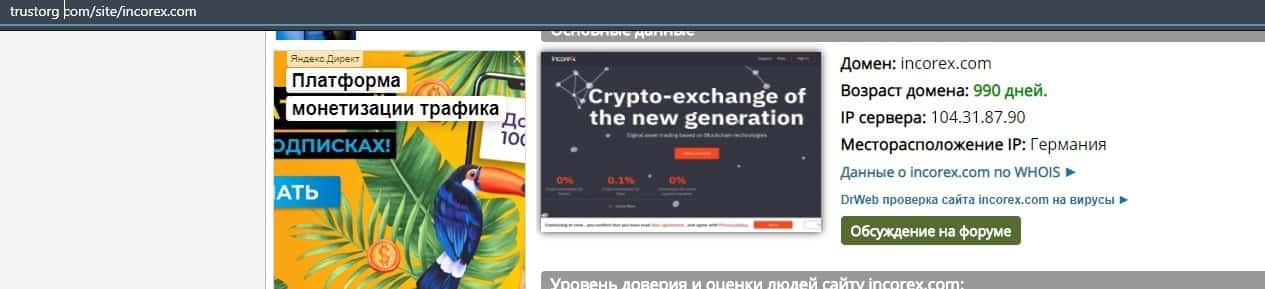 - О возрасте домена шараги incorex com