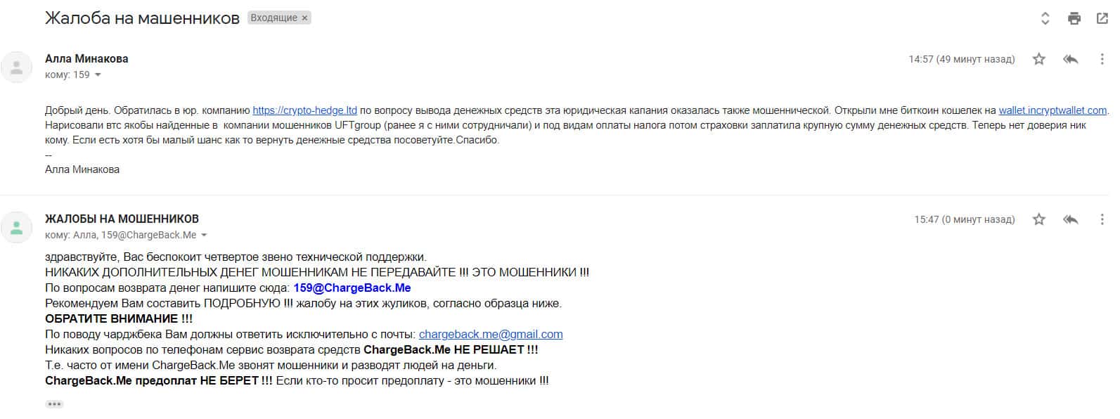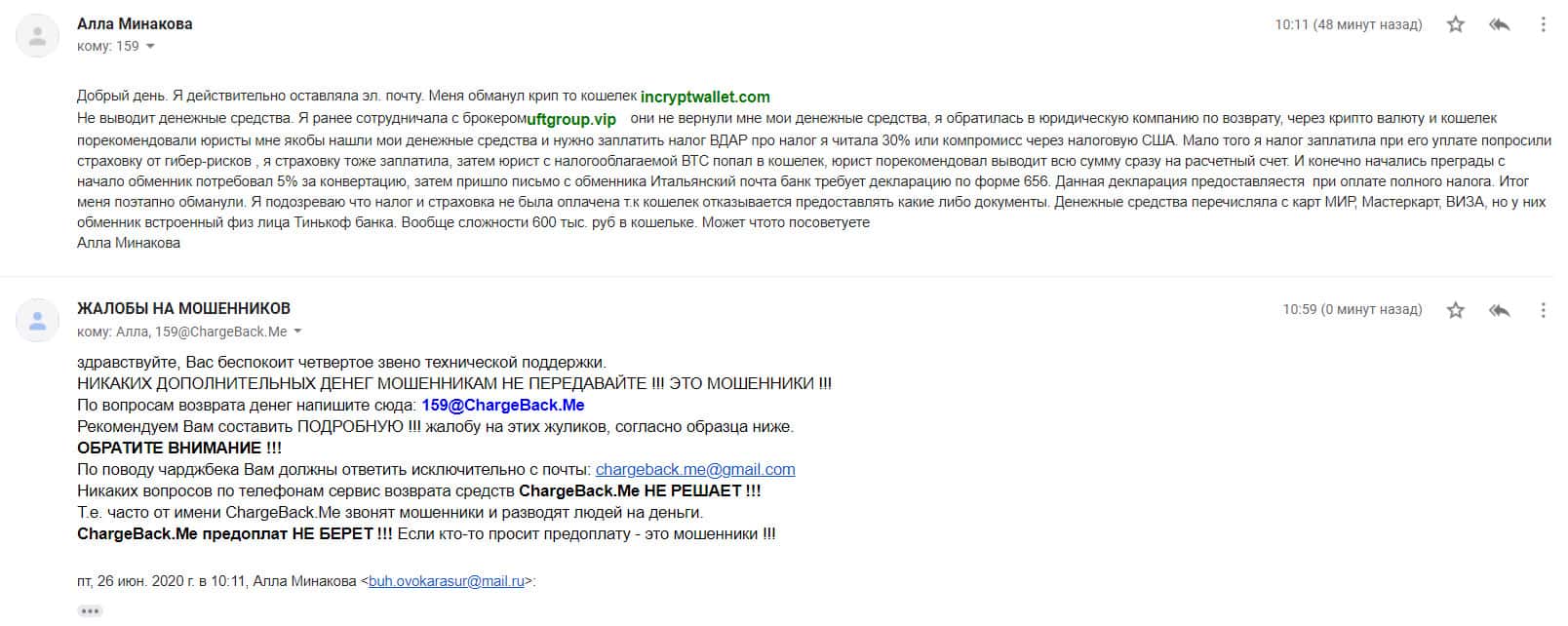 Аферисты Инкрипт Валлет и UFT Group развели человека на 600 тысяч рублей