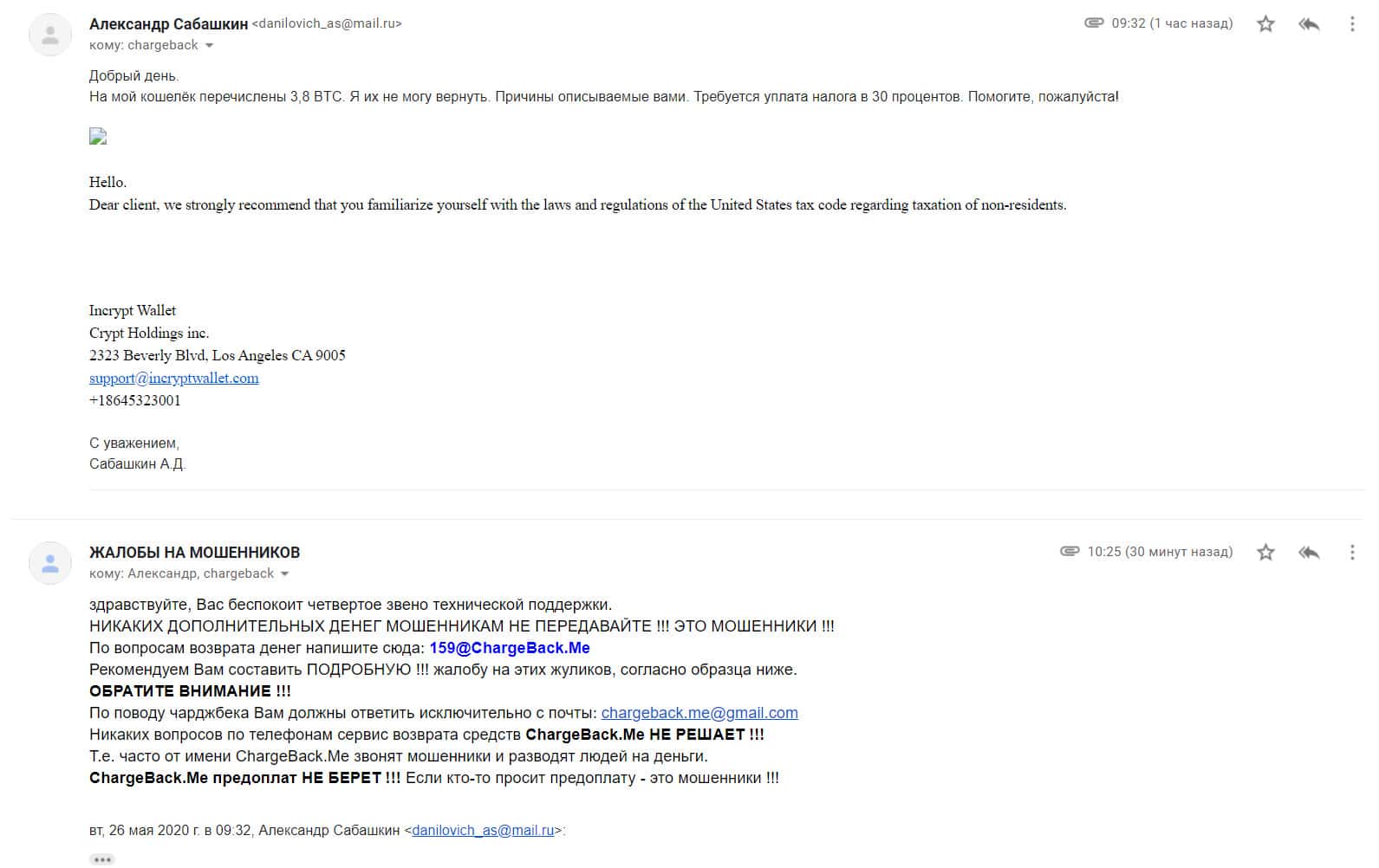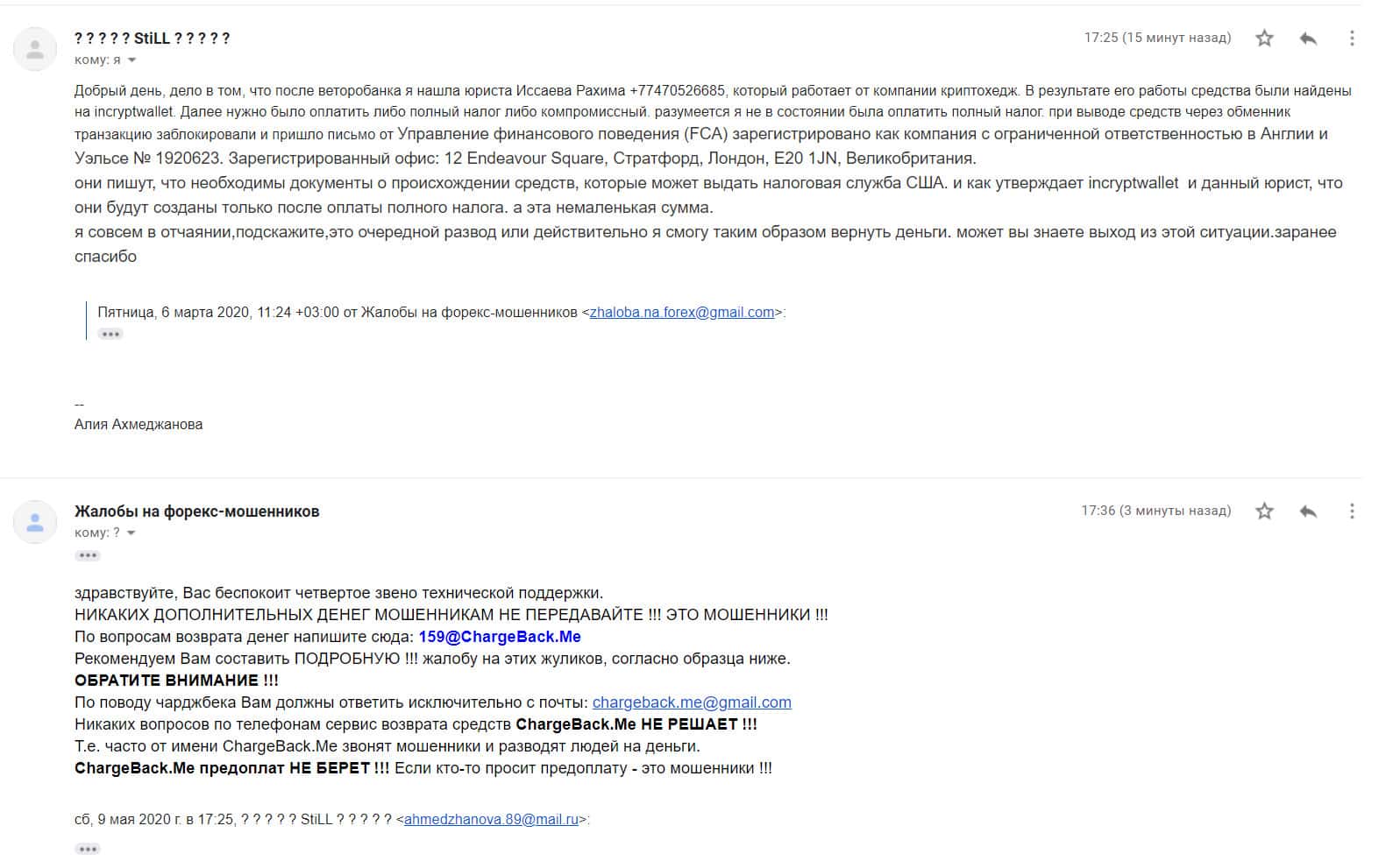 Жалоба в том числе и на скам проект IncryptWallet - клиент утратил около 900 000 рублей