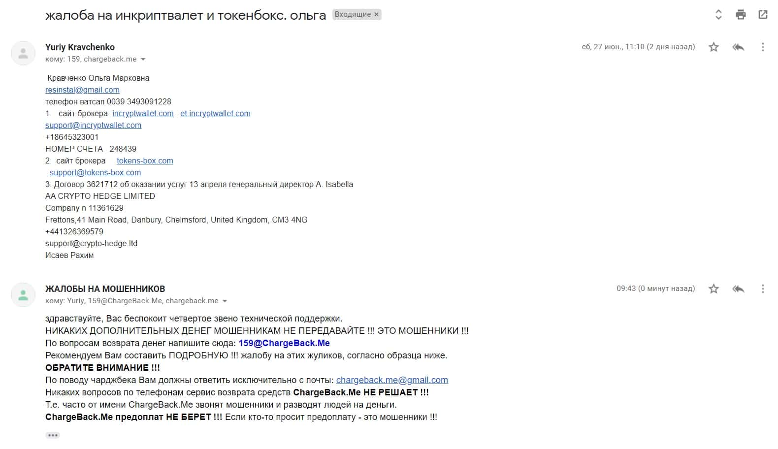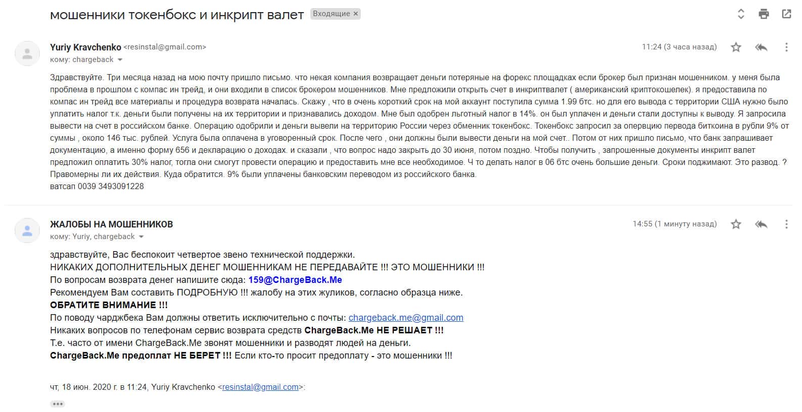- Жалоба на скам-контору Инкрипт Валлет, которая работает в одной связке с Токенс Бокс