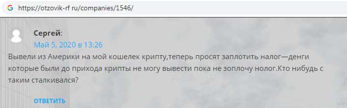 На интернет-портале otzovik-rf ru замечен отзыв об аферистах IncryptWallet, автор которого некий Сергей пишет, что мошенники ему угрожают тем, что он якобы не сможет вывести свои денежные средства до тех пор пока не оплатит налог. С такой ситуацией сталкиваются многие, поскольку Инкрипт Валлет в любом случае не дает возможности вывести свои средства !!!