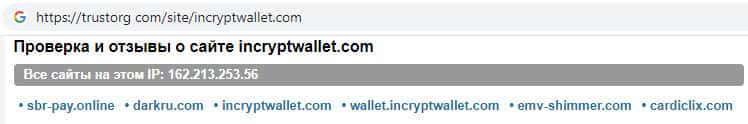 На информационном сайте trustorg com была произведена проверка ip-адреса мошеннической организации IncryptWallet. Выяснилось, что сайт данной скам-организации находится по соседству с интернет-порталами, которые не имеют никакого отношения к рынку Форекс, а именно с непонятными сомнительного происхождения сайтами.